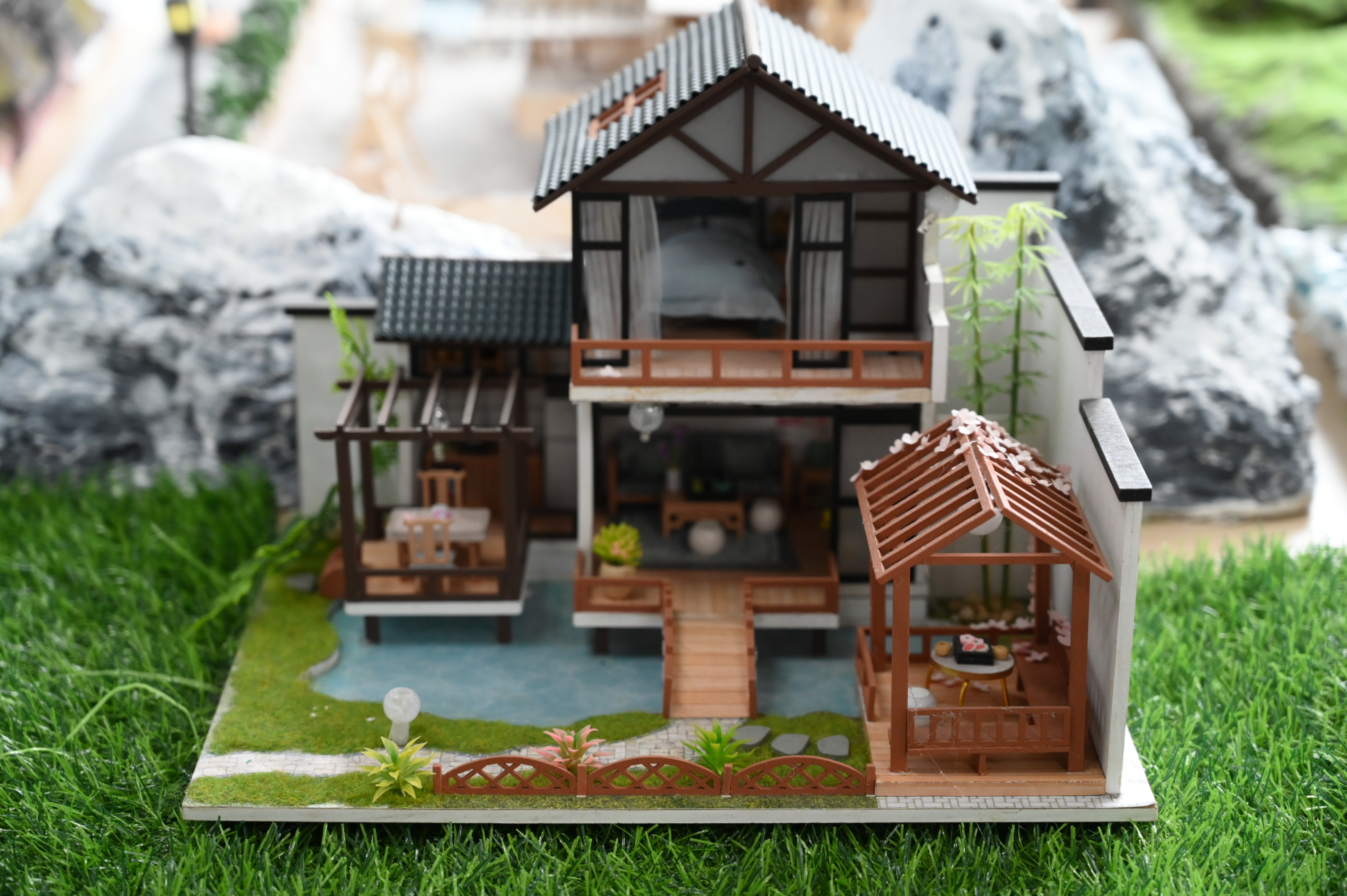 模型,是设计中最为直观的展示,作为客观实在,亦是设计者观察、思辨的对象,是进一步完善、发展设计的基础。本展示区主要为江南园林、景观地貌及室内设计等模型,其名称为《春山可望》《青舍冰涧》《晓青山》等,充分展现学生在受到自然景观、中国古代建筑的启发后,从中汲取色彩、纹理等元素,将自然之美、人文之美融入设计。