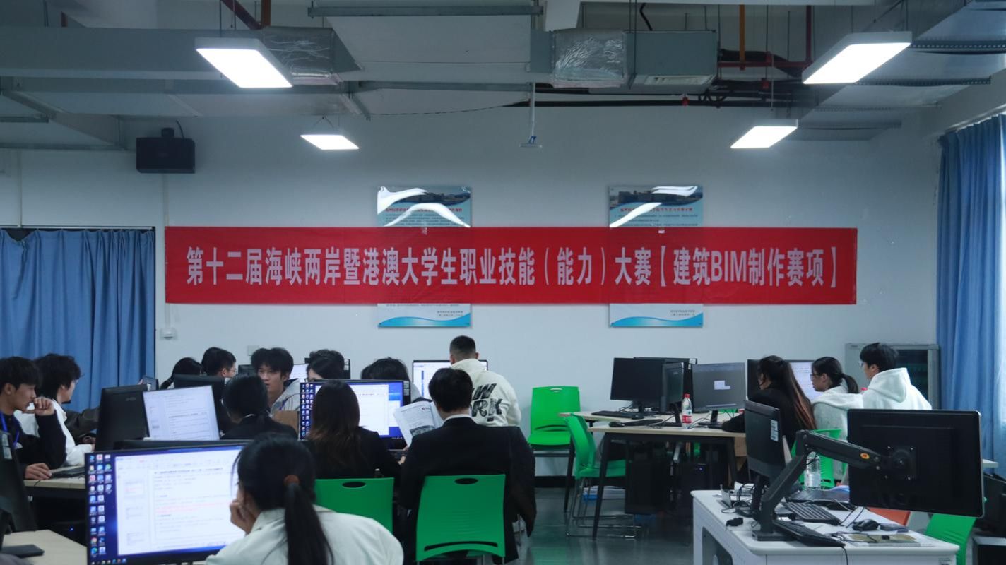 2025年12月7日,第十二届海峡两岸暨港澳大学生职业技能大赛——建筑BIM制作赛项在我校顺利举办。本次大赛由福建省教育厅、福建省人力资源和社会保障厅、福建省互联网信息办公室、平潭综合实验区管理委员会共同主办,海峡两岸职业教育交流合作中心、福州软件职业技术学院承办、福建晨曦信息科技集团股份有限公司协办。赛事共吸引20多所高校及5支台湾暨港澳地区高校组,共计百余名师生同场竞技。