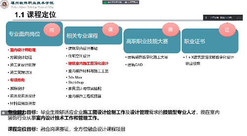 为进一步提升智能建造产业学院建造室内设计专业人才培养质量,全面推进专业内涵建设,提高教师教学能力,提升课堂教育教学质量,引导广大教师树立教育教学新理念,积极探索教学的新途径与新方法,促进广大教师相互交流学习。2023年8月15日,智能建造产业学院建筑室内设计专业开展了线上“说专业”“说课程”的活动。