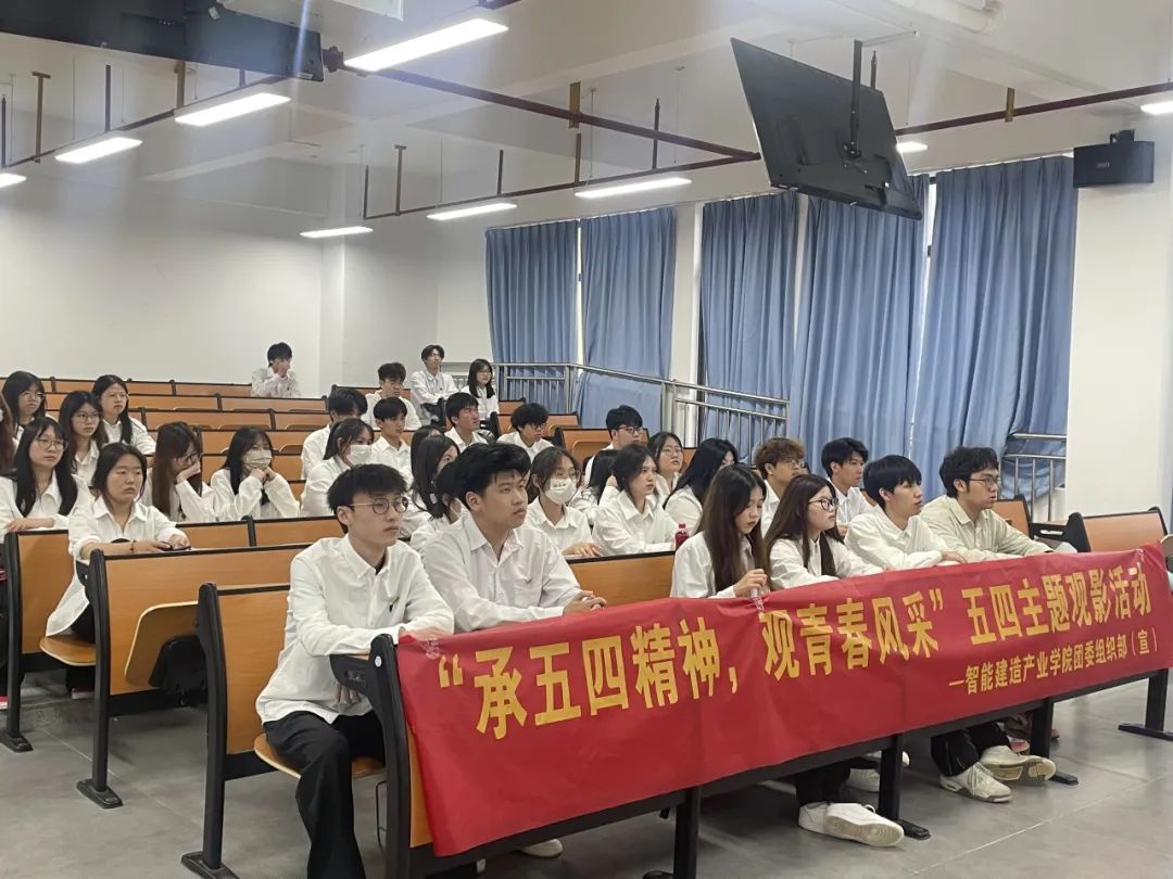 五四风雷,激荡百年;五四精神,薪火相传。为了纪念“五四运动”,缅怀和继承“五四”光荣传统,弘扬“爱国、进步、民主、科学”的五四精神,团结引领广大青年永远跟党走、奋进新征程,智能建造产业学院于2024年4月24日在教学楼F618举办“承五四精神,观青春风采”五四主题观影活动。