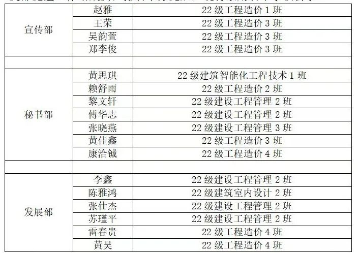 智能建造产业学院党建工作站于2022年10月20日始开展纳新面试工作,至10月21日截止收集成员报名信息表,10月21日完成面试工作,并于11月5日完成了工作站人员纳新的筛选工作。本着“公平、公正、公开”的原则,经学生自主报名、面试选拔、最终投票等综合考核,共录用17位同学为智能建造产业学院党建工作站成员,排名不分先后,现将录用名单予以公示: