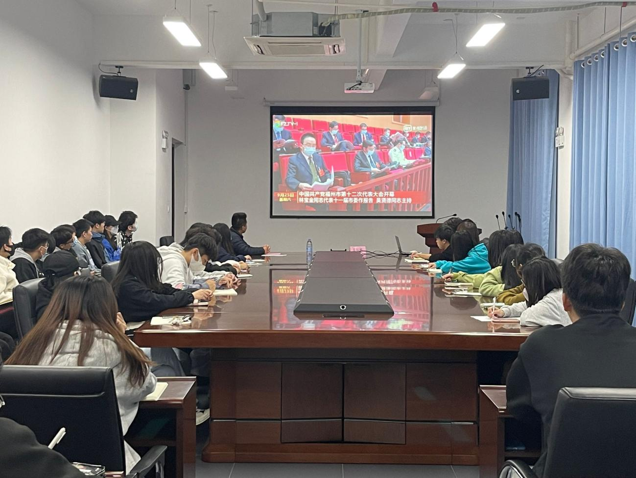 为了加强大家对第十二次党代会的整体了解,王征榕老师组织大家观看关于十二次党代会的报道。我们深刻认识到要弘扬伟大建党精神,坚定不移地传承好、弘扬好、践行好习近平总书记留给福州的宝贵思想财富、精神财富和实践成果,把思想和行动统一到市党代会部署要求上来,把会议精神贯彻落实到工作学习的各方面,为福州建设社会主义现代化国际城市贡献积极力量。