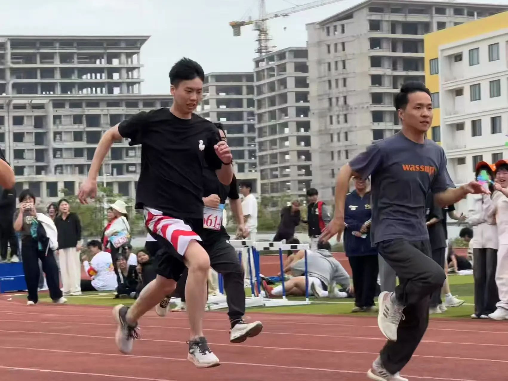 一声枪响,教工男子100米比赛正式拉开帷幕。只见跑道上的老师们如脱缰的骏马般飞驰而出,他们身姿矫健,步伐急促有力,卷起一路风声。其中王超老师爆发力十足,飞速摆动双臂,不断加速,勇夺小组第三名。现场师生们的欢呼声、喝彩声交织成一片,将运动会的气氛推向高潮。