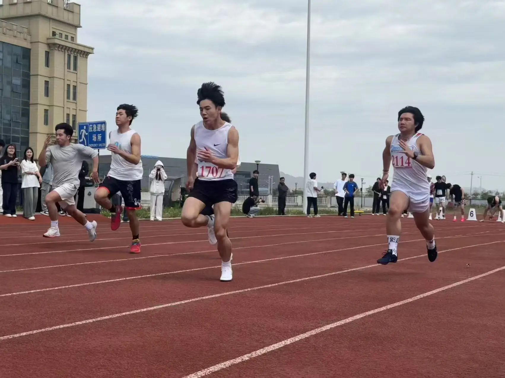 发令枪响,尖锐声响瞬间划破天际。男子100米预赛的跑道上,8位选手如猎豹般弹射而出,肌肉紧绷,迸发出惊人爆发力。吴飞扬选手一马当先,步幅阔大,频率极快,每一步都似要踏破跑道。他目光坚定,紧盯终点,汗水在阳光下闪烁。临近终点,他拼尽全力冲刺,胸膛率先撞线,观众席瞬间沸腾,欢呼声、呐喊声交织成一曲胜利乐章。