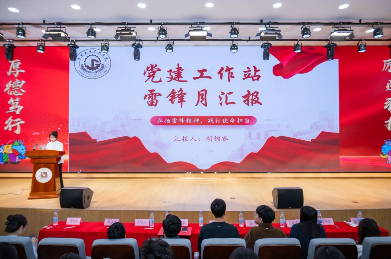 由党建工作站党建部胡锦睿同学代表党建工作站,从四个方面汇报2025年3月智能建造产业学院学生党支部雷锋月活动开展情况:一是雷锋月概述,弘扬新时代雷锋精神,开展多样党日活动;二是党课领航明使命,以主题分享会形式解读雷锋精神,激励入党积极分子;三是主题党日践初心,开展 “球球联动雷锋月,并肩共筑温暖局” 活动,通过创意手工领悟雷锋精神;四是活动总结,活动通过理论与实践结合,增强学生党员和入党积极分子思想信念与行动自觉,后续党支部将持续开展多元活动传承雷锋精神 。