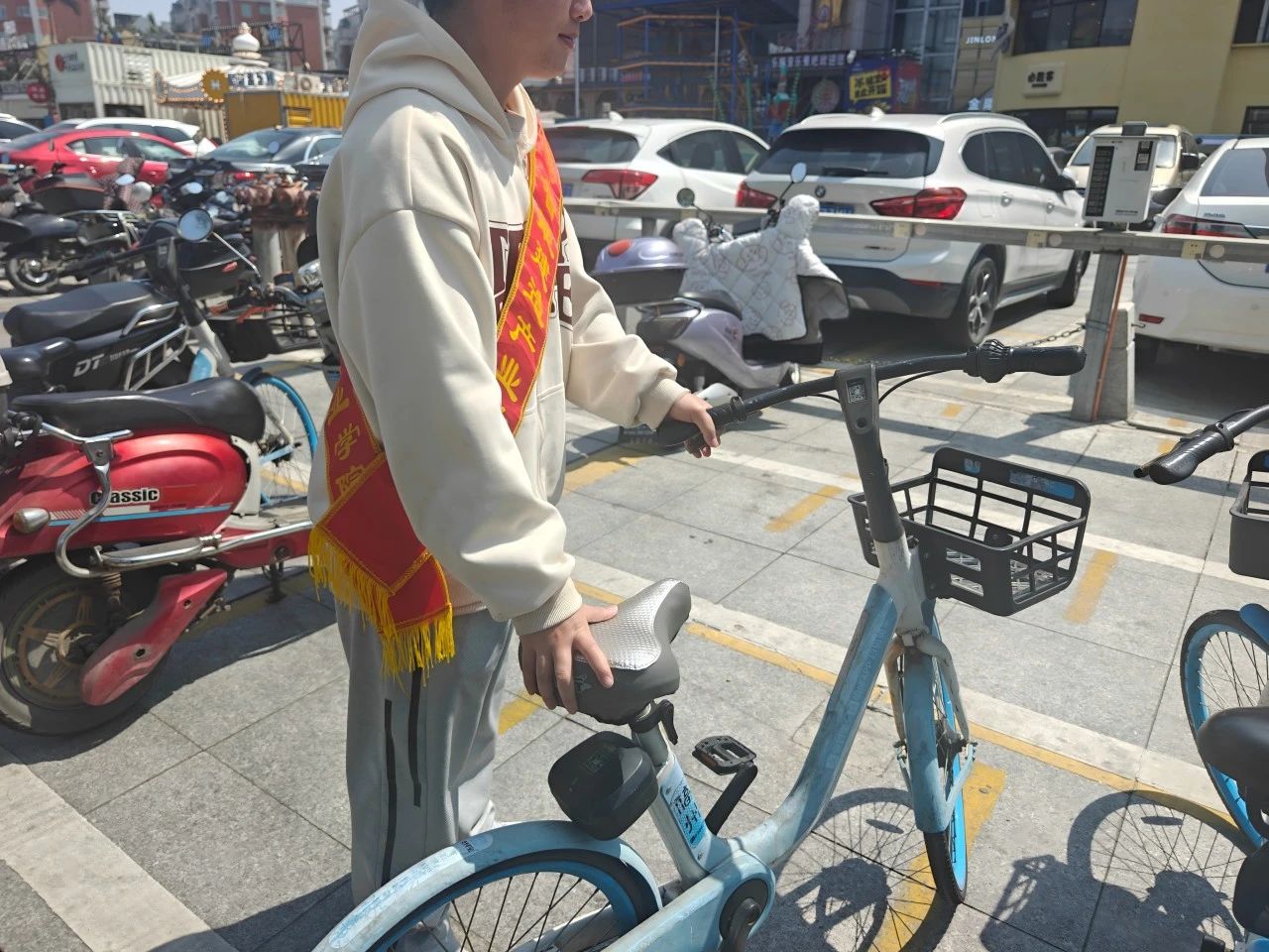 活动伊始,志愿者们分工合作,有序的在街道的各个角落进行着清洁服务。在自行车停放区,志愿者们共同协作,齐心协力将倒伏的共享单车扶正,将随意停放的车辆移至指定区域, 确保车辆排列整齐、道路畅通。志愿者们的热情和勤于劳动的干劲,使吴航街道环境焕发更美丽和谐的气息。
