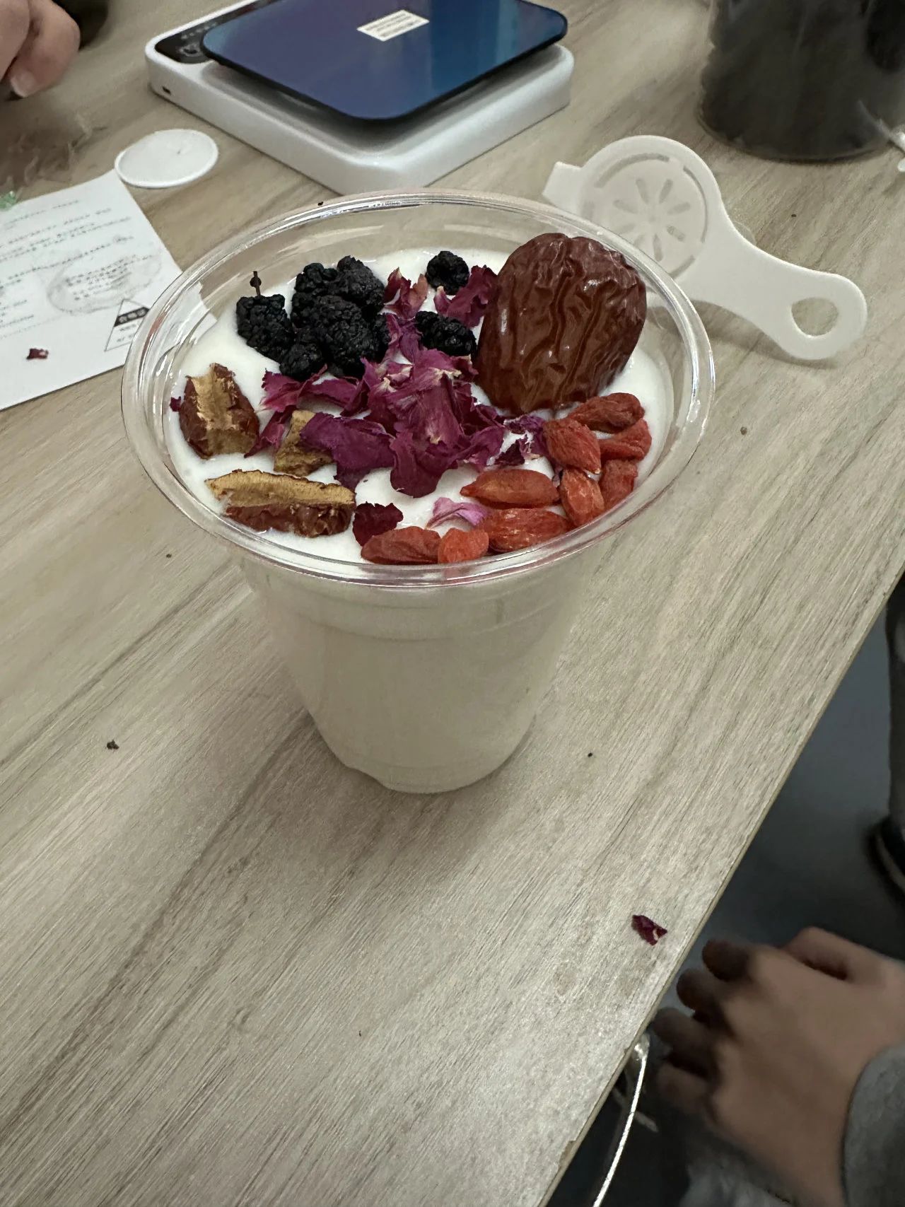 活动开始,在茗韵茶艺社的社员帮助下,大家有条不紊的进行着中式茶饮的制作以及各种茶叶冲泡方法。当传统茶汤遇上现代灵感——金桂乌龙撞奶、冷萃茉莉冰茶…社员们以茶为画布,调配出专属自己的国风饮品。为了让传统茶韵焕发新生,社员们在茶席上开启创意工坊。青瓷盏中注入金桂乌龙,奶泡如云朵般轻盈飘落,茶香裹着桂花蜜的甜润在舌尖绽放;透明冰杯里冷萃茉莉渐次舒展,冰块撞击声与古琴乐交织成春日协奏曲。参与者们手持国风特调饮品,围坐在竹影摇曳的茶寮中,听非遗传承人讲述 "茶百戏" 的千年技艺,看茶汤表面幻变出山水墨画。