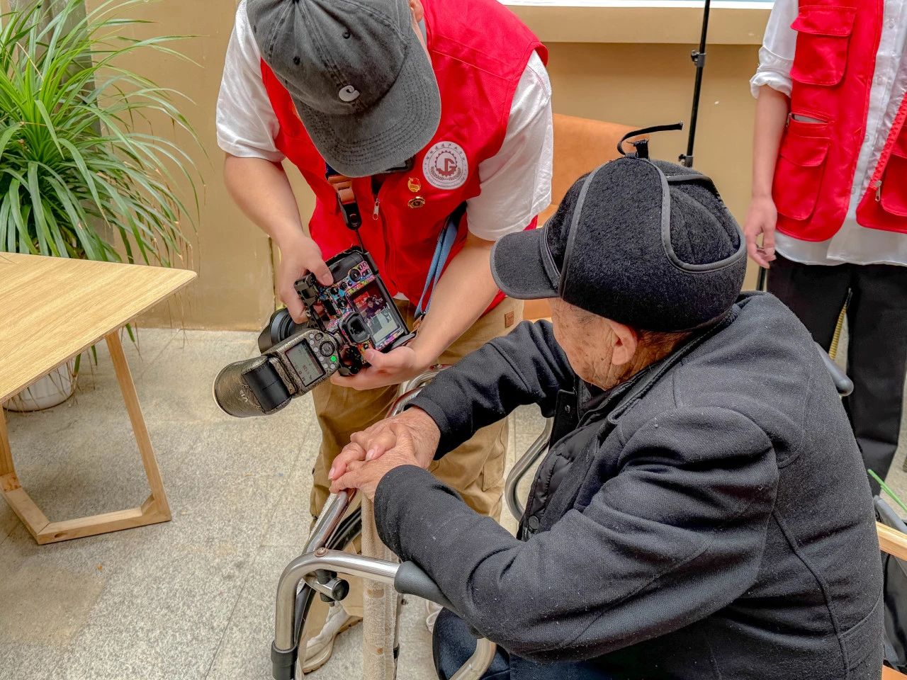 为了给老人们留下一帧帧晚年的回忆,交谈期间,同学们耐心地引导老人们摆出各种姿势,用相机定格此刻的画面。老人们脸上洋溢着温暖的笑容,每当拍完一张照片,他们就会立刻拿给老人看,屏幕上老人的笑容那么灿烂,眼睛里闪烁着惊喜的光芒。老人们纷纷点头称赞,与同学们分享着这份喜悦。那一刻,相机定格的不仅是画面,更是两代人之间美好的情感交流。
