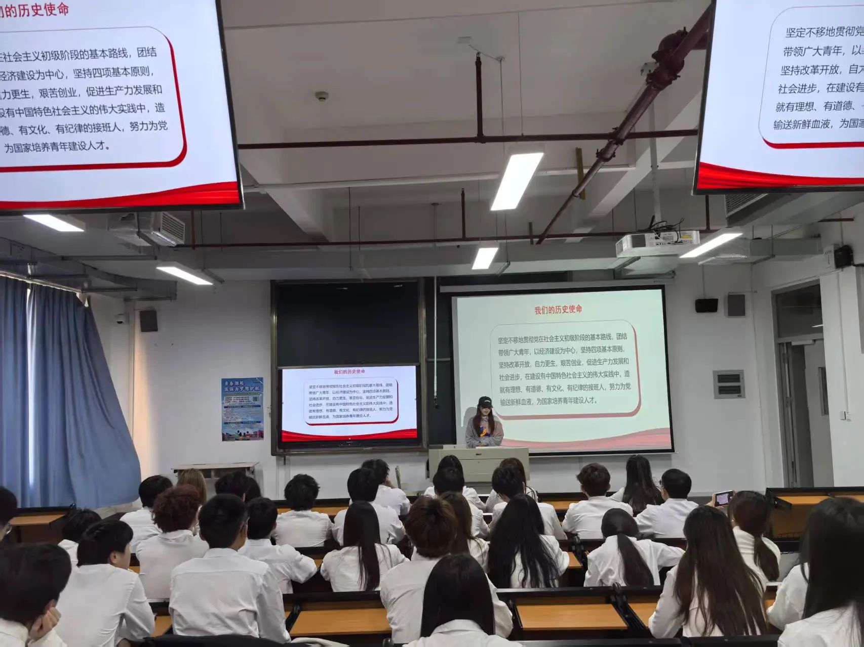 本次团课王明媚老师带领同学们回溯共青团的发展历程。从1922年共青团的诞生,到新民主主义革命时期,共青团引领广大青年为民族独立和人民解放事业英勇奋斗,无数热血青年投身反帝反封建斗争,他们的身影穿梭在硝烟与呐喊中,用青春和热血谱写壮丽篇章。