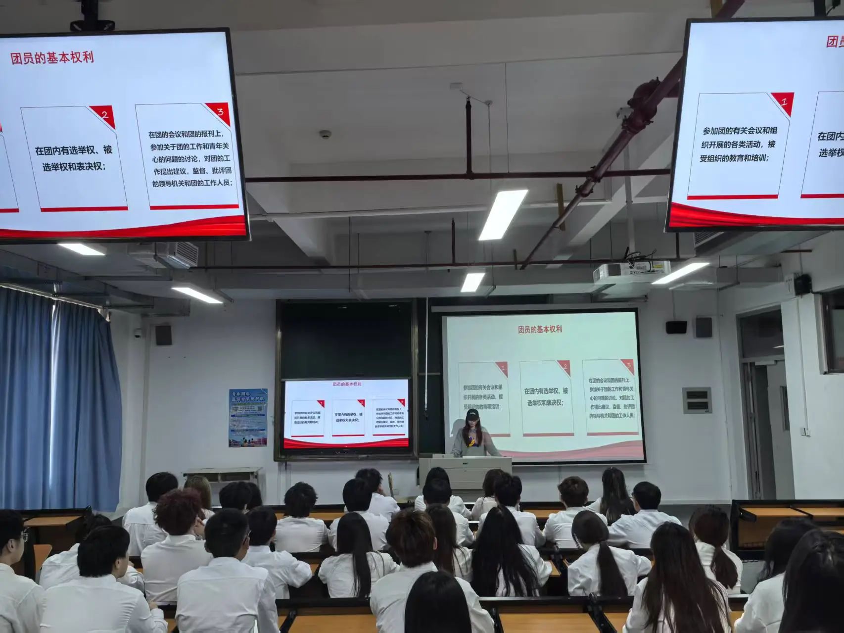 接着,团课深入剖析共青团的组织架构与运行机制。从基层团支部到上级团委,每一个层级都肩负着独特的职责,如同精密齿轮,相互协作,推动共青团不断前进。在讲解中,同学们了解到团支部作为共青团最基层的组织,是联系青年的桥梁和纽带,通过组织各类团日活动、志愿服务等,将团员青年紧密团结在一起。清晰的组织架构展示,让同学们认识到共青团强大的凝聚力和战斗力来源,也明白了自己在团组织中的位置和责任。