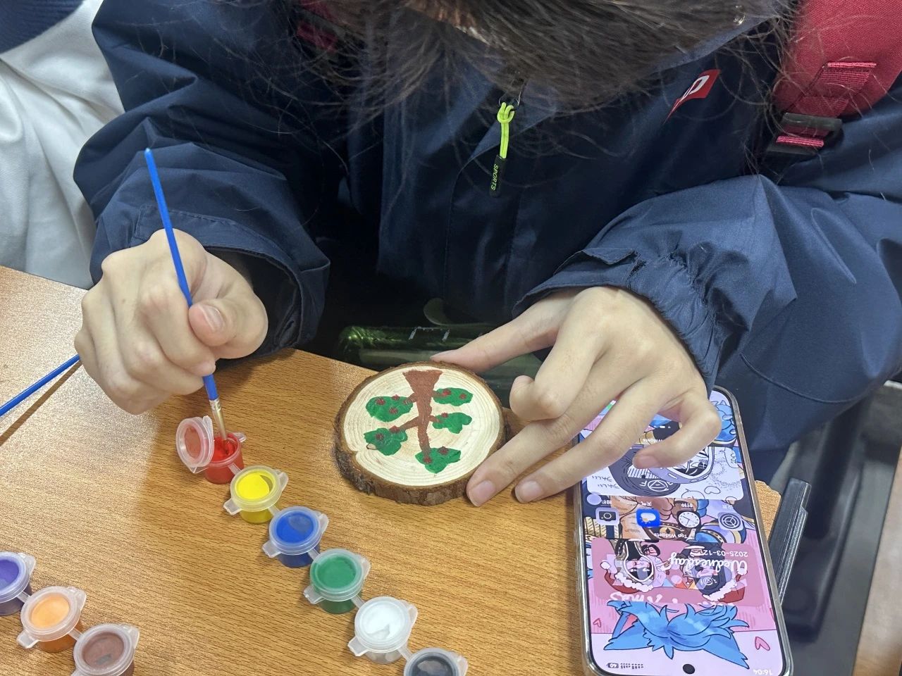 活动伊始,同学们拿起画笔,在树片上精心勾勒。每一笔都倾注着他们对植树节独特的感悟,将绿色希望与生态梦想具象于树片之上。这些饱含绿意的树片,承载着大家对植树节的礼赞,充分展现了他们丰富的想象力和创造力,同时彰显出青年一代守护生态的坚定决心。