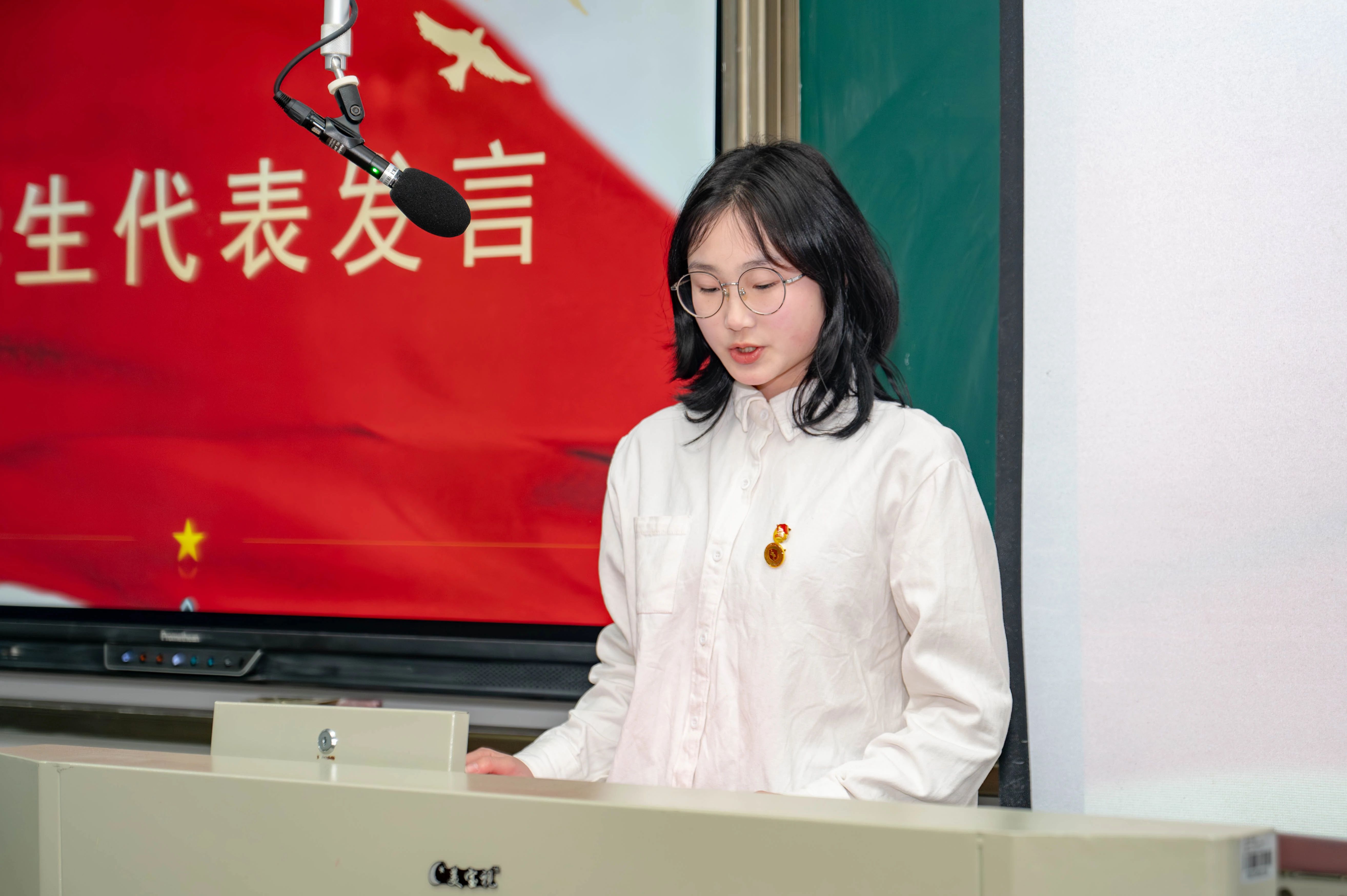 周雨彤同学作为学生代表发言,她说到:作为入团积极分子,我们要时刻牢记团的宗旨,积极践行社会主义核心价值观,不断提升自己的思想觉悟和综合素质。团组织是青春的集结地,是梦想的起航点。在这里,我们汇聚一堂,共同学习,一起成长,努力成为一名合格的共青团员。