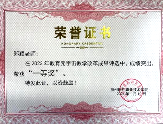 教师郑颖获得“一等奖”和“优秀教育工作者”
