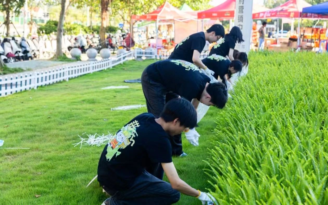 在三下乡实践中,"耕心"社会实践队化身环保卫士,奔赴福建平潭吾悦广场周边, 对绿化带、人行道开展"地毯式"清扫, 实践队员们弯腰俯身,认真捡拾每一处垃圾,精准区分可回收物、厨余垃圾等,让各类垃圾"各归其位"。以实际行动诠释垃圾分类理念,用汗水为城市环境"美颜",在践行环保中,传递绿色生活态度,为优化社区生态添砖加瓦 。