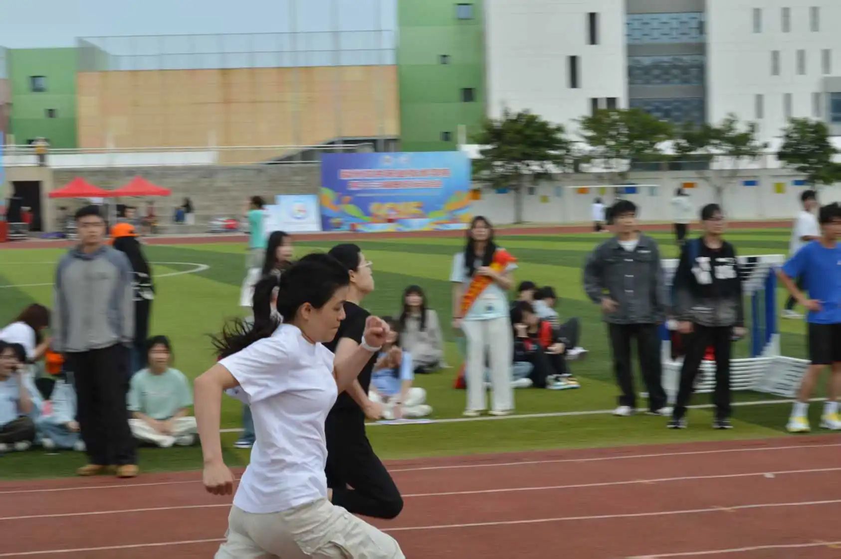 一声枪响,教工男子100米比赛正式拉开帷幕。只见跑道上的老师们如脱缰的骏马般飞驰而出,他们身姿矫健,步伐急促有力,卷起一路风声。其中王超老师爆发力十足,飞速摆动双臂,不断加速,勇夺小组第三名。现场师生们的欢呼声、喝彩声交织成一片,将运动会的气氛推向高潮。