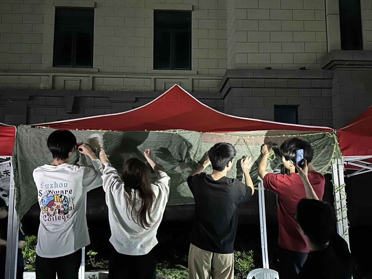 活动前期,同学们充分发挥劳动精神,齐心协力完成现场布置。从搬运桌椅、搭建帐篷,到精心装饰专栏,每一个环节都倾注着他们的心血。他们不怕吃苦、团结协作,用创意和耐心为活动场地增添了浓郁的森林氛围。同时,同学们更是发挥创意,采用森林主题元素,精心绘制图案、悬挂运动主题手抄报图画,营造出浓郁的自然氛围。通过森林大本营主题活动,让同学们在享受运动乐趣的同时,也为智建一队的运动员们营造一个独特而富有自然气息的活动场所。