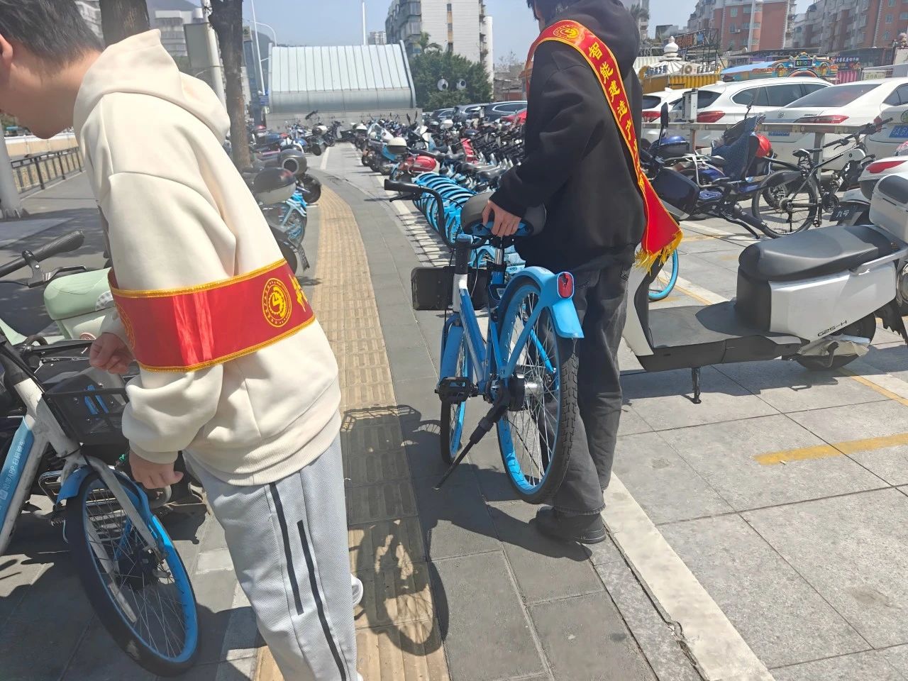 活动伊始,志愿者们分工合作,有序的在街道的各个角落进行着清洁服务。在自行车停放区,志愿者们共同协作,齐心协力将倒伏的共享单车扶正,将随意停放的车辆移至指定区域, 确保车辆排列整齐、道路畅通。志愿者们的热情和勤于劳动的干劲,使吴航街道环境焕发更美丽和谐的气息。
