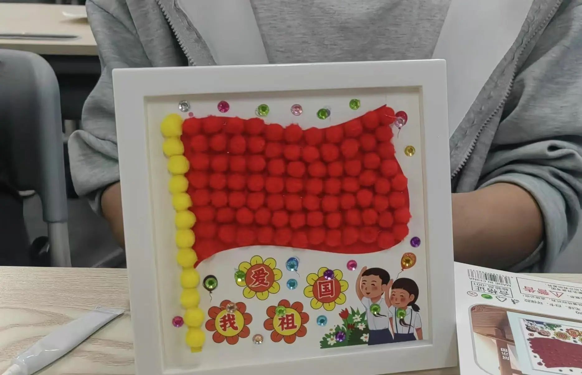 制作雷锋画像时,同学们怀着崇敬之心,每一颗毛球的粘贴都饱含对雷锋同志的敬仰。大家一边制作,一边交流着雷锋的事迹和精神对自己的影响。有同学感慨道:“以前只是在书本上了解雷锋,这次亲手制作雷锋画像,感觉和他的距离更近了,他的精神真的很鼓舞我。”制作红旗及其他模板图案时,同学们严格按照相应设计要求,一丝不苟地粘贴毛球,力求将作品完美呈现。