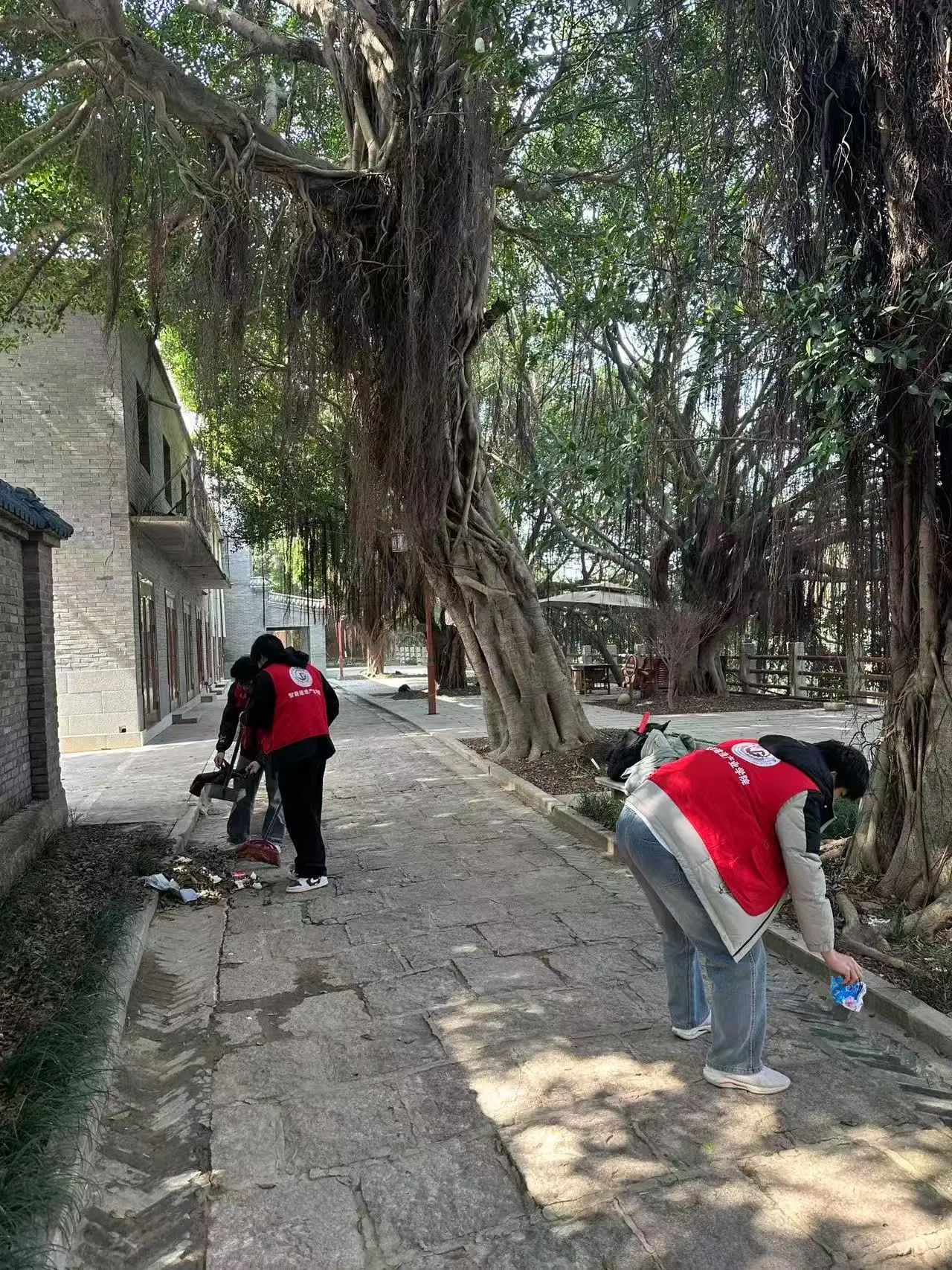 活动伊始,同学们听从团支书安排来到活动场地,同学们热情高涨,纷纷投身到活动中。大家手持清洁工具,分工明确,对街道,小路进行了全面细致的清理。无论是街道角落的废纸,还是花丛中的塑料瓶,都逃不过志愿者们的火眼金睛。他们不怕脏、不怕累,用双手为环境“焕新颜”。