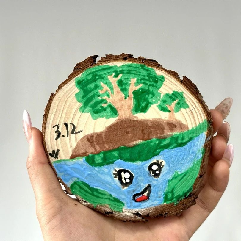 同学们将对植树节的理解与呵护自然的心意,悄然融入一片片树片之中。放眼望去,一幅幅作品绚丽夺目、别出心裁。每一次下笔都传递着对植树节意义的深度思索,对绿色未来的无限憧憬 。
