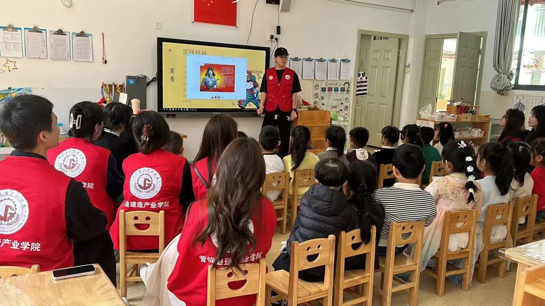 福州软件职业技术学院智能建造产业学院22级建筑室内设计1班于2024年3月28日前往梅花中心幼儿园开展“春风化雨润心田,锋影悠扬古今传”雷锋月主题宣传活动。