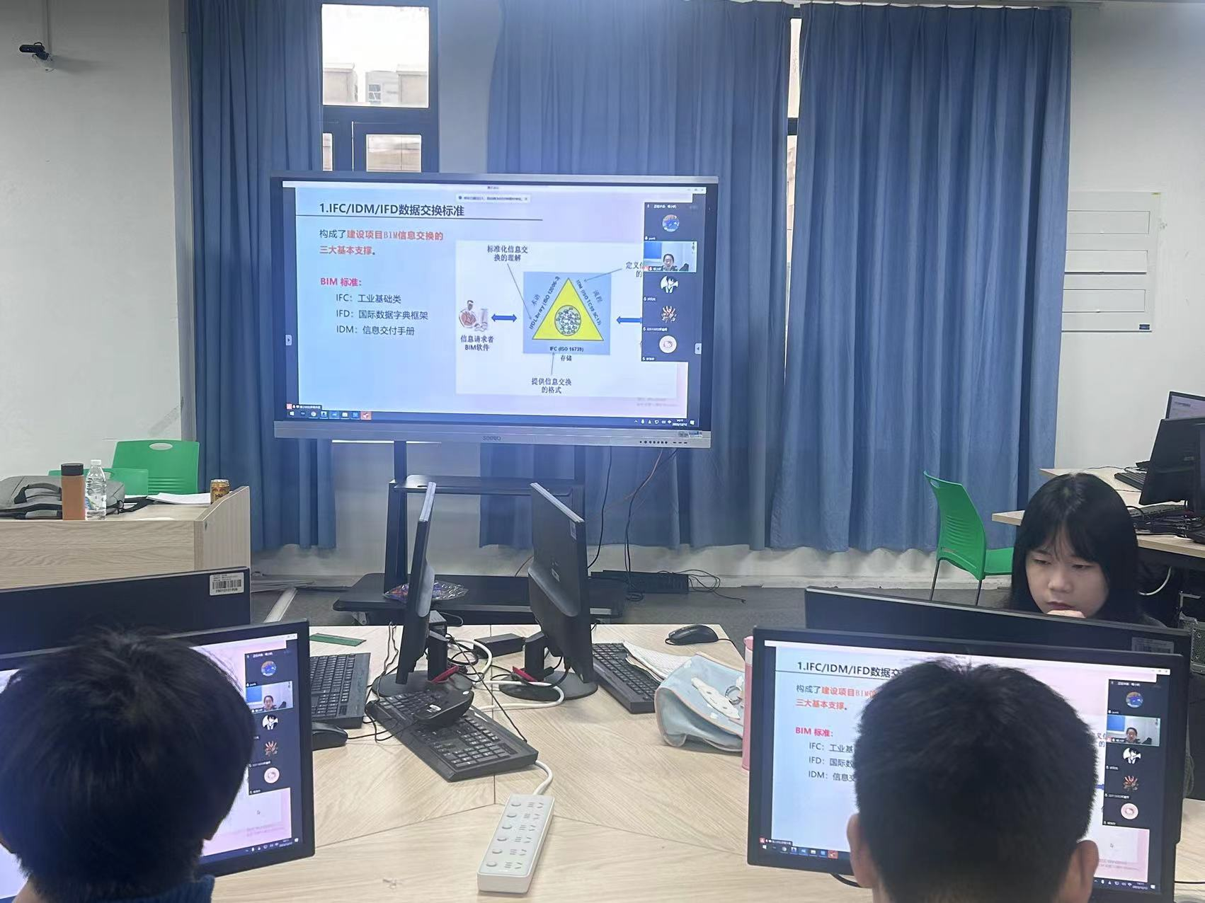 在课堂中,校友李苗以实际项目为例,详细阐述了BIM(建筑信息模型)技术在建筑设计、施工和运维全过程中的应用。她介绍,BIM技术可以实现建筑项目的数字化管理,提高项目管理效率,降低成本,缩短工期,并且有助于实现绿色建筑和可持续发展。
