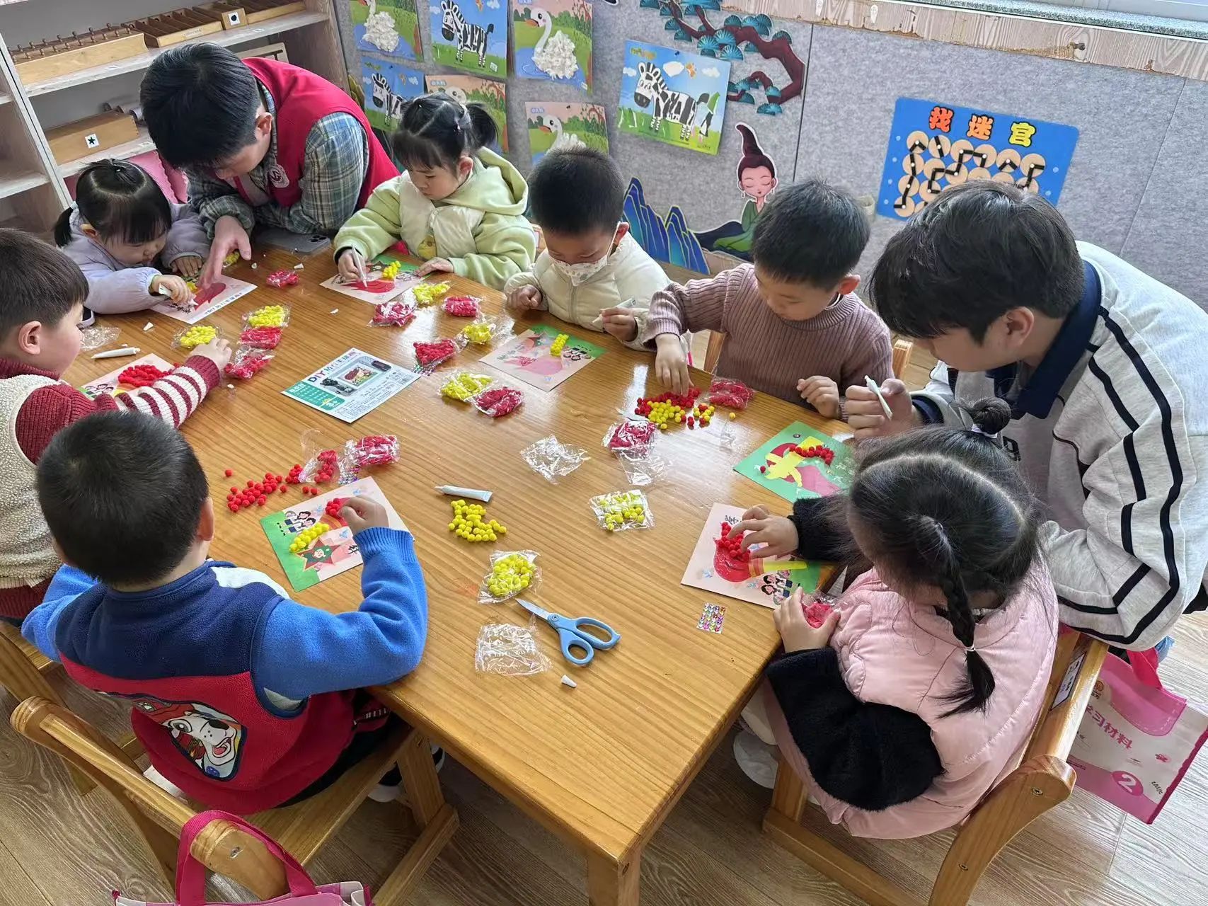 在老师的陪同下,志愿者们与小朋友们一起完成手工作品。看到小朋友们积极认真地创作,志愿者们用实际行动为他们树立了良好的榜样。这不仅是对雷锋精神的传承,更是对小朋友们的言传身教。