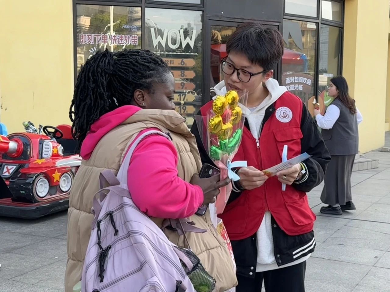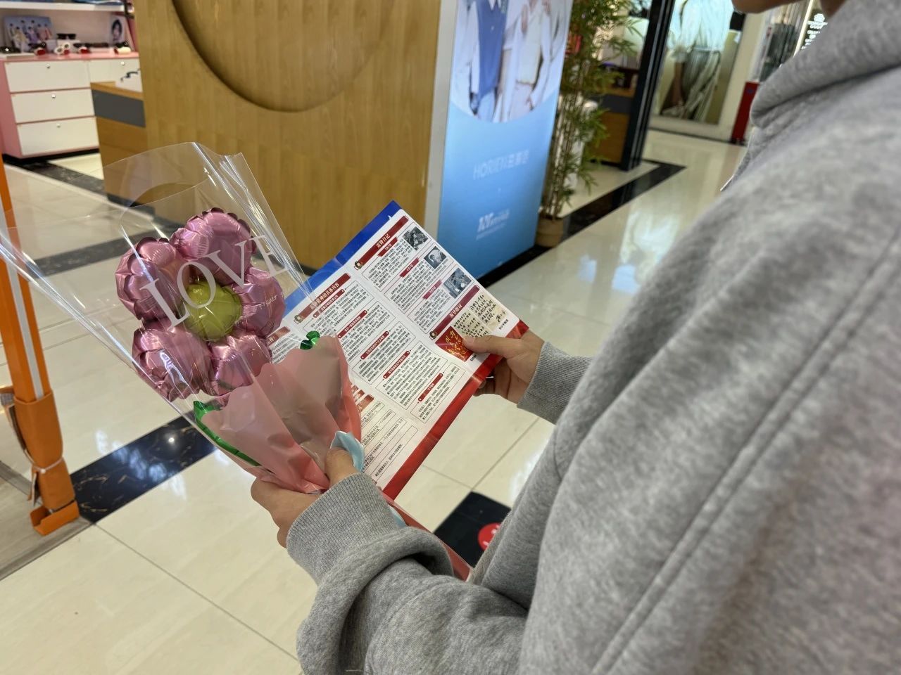 活动当日,团员们早早来到十洋国际城。热闹的商场里,人来人往,洋溢着生活的烟火气,这也为活动的开展提供了良好的氛围。团员们带着精心准备的气球花花,开启了“赠人玫瑰,手有余香”的温暖传递。
