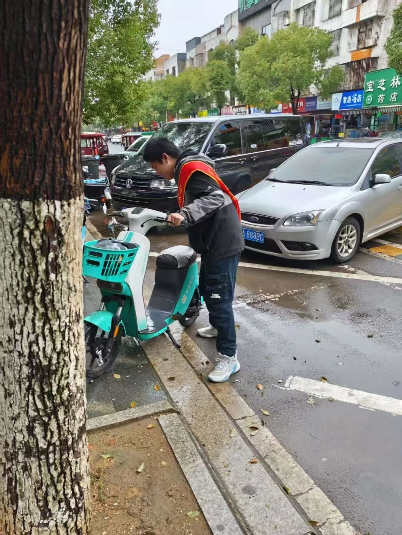 接着,同学们来到街道旁,发现共享电动车停放得杂乱无章,不少车辆甚至占用了盲道,严重影响了行人通行以及视障人士的出行安全。见状,同学们发起“共享电动车规范停放”引导行动,整理乱停的车辆。原本混乱的街道变得井然有序,盲道也重新恢复了畅通,空出的盲道位置为视障人士留出了安全出行的通道。同学们以实际行动生动地传递了雷锋精神,在帮助他人、改善社区环境的过程中,切实增强了自身的社会责任感,深刻体会到为社会贡献力量的价值与意义。