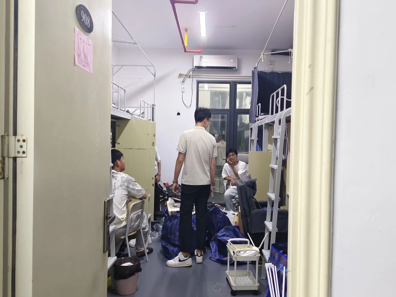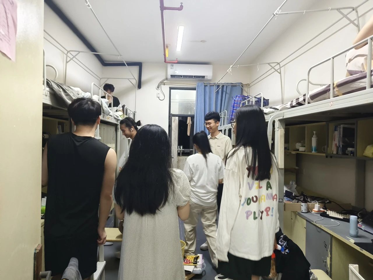 新学期,新开始,为进一步做好校园安全稳定工作,了解学生返校情况,加深与学生的沟通交流,2024年9月1日晚上,智能建造产业学院党总支副书记王超老师、学生党支部书记林玫老师、思政辅导员陈欢老师、蓝荷英老师、林泳仪老师走访学生寝室,与同学们进行新学期的沟通与交流,同时检查寝室安全隐患与卫生环境。
