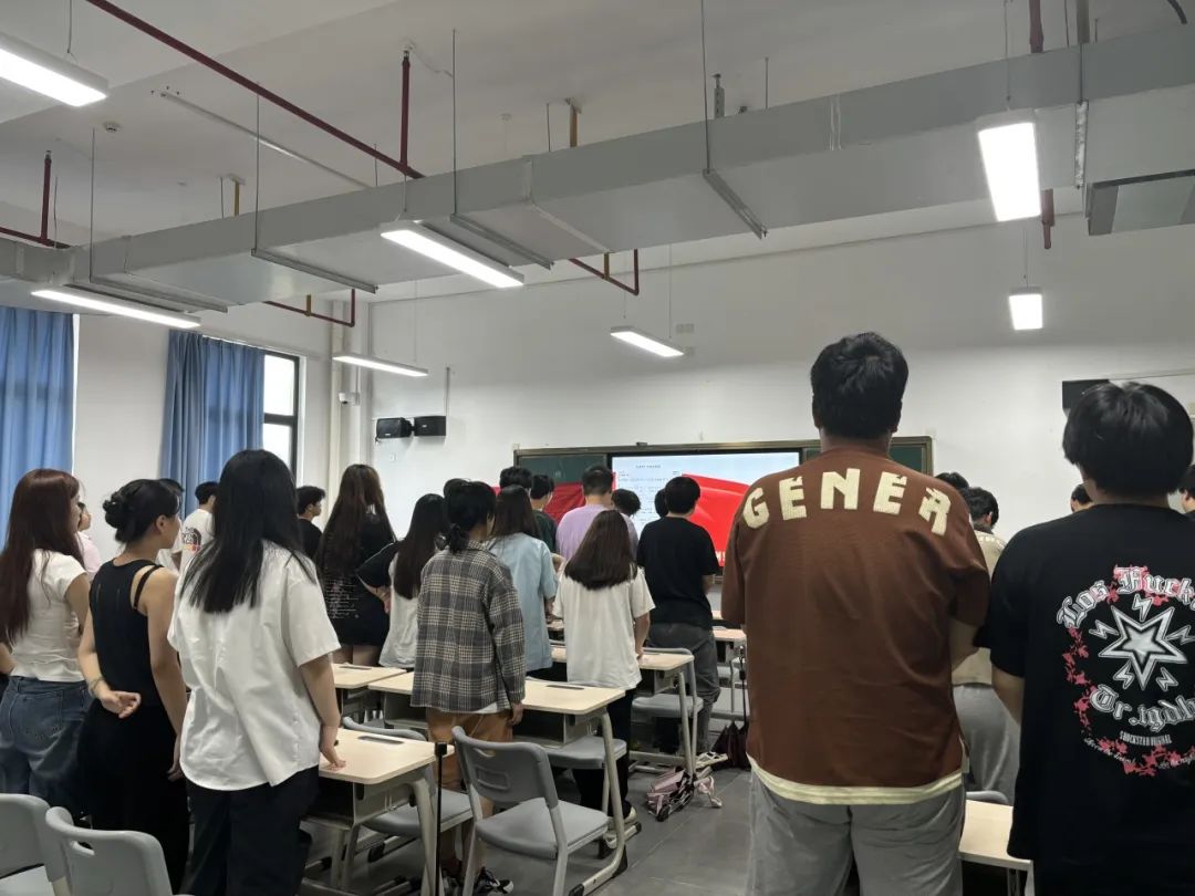 活动伊始,2023级建筑室内设计1班团支部成员及全体同学起立奏唱团歌。