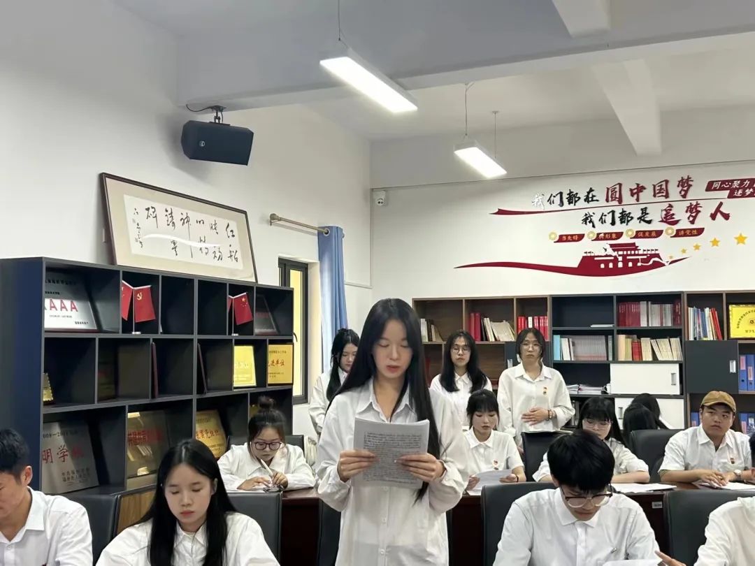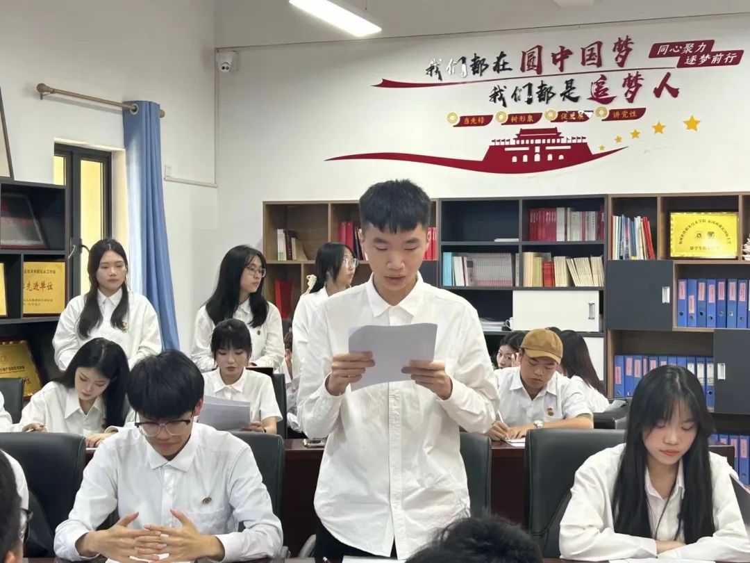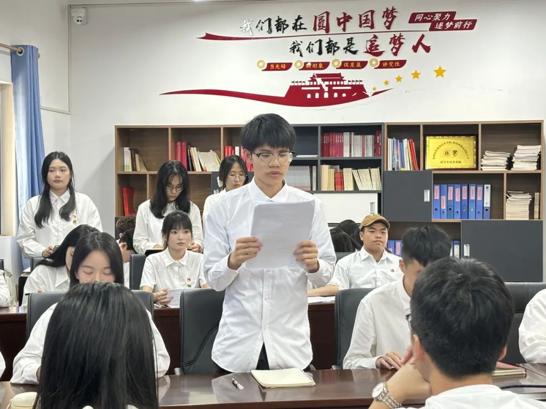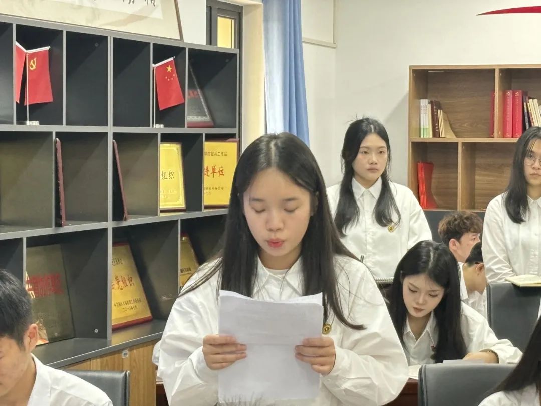 发展对象赵雅、谢怡婷、郑李俊、邢明扬、郑佩雯宣读《入党志愿书》,并向党组织汇报了自己近期在思想、学习、生活等方面的情况,将自己在发展时期的思想、学习、生活等方面向党支部做具体汇报,他们表示在接下来的生活中将继续接受党组织的培养考察,按照党员的标准严格要求自己,不断地加强自身对政治理论和党性知识的学习,提高自身综合素质,牢记全心全意为人民服务的宗旨。