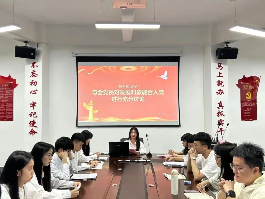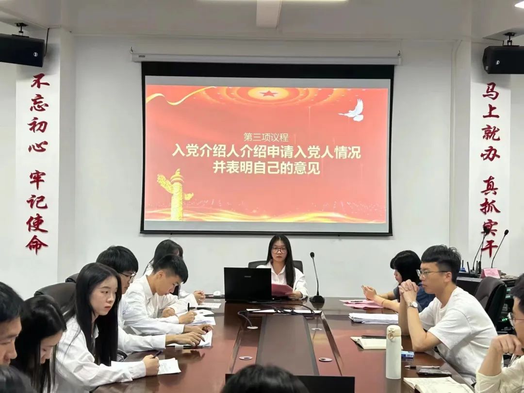 支委会组织委员陈欢同志代表支委会报告五名发展对象审查情况,经政审,发展对象本人及家庭主要成员和主要社会关系政历清白,无重大政治、历史问题。已基本具备党员条件,同意接收为中共预备党员。