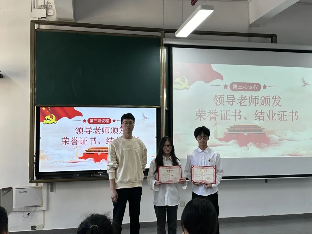智能建造产业学院思政辅导员吴唯玮老师为入党积极分子颁发结业证书