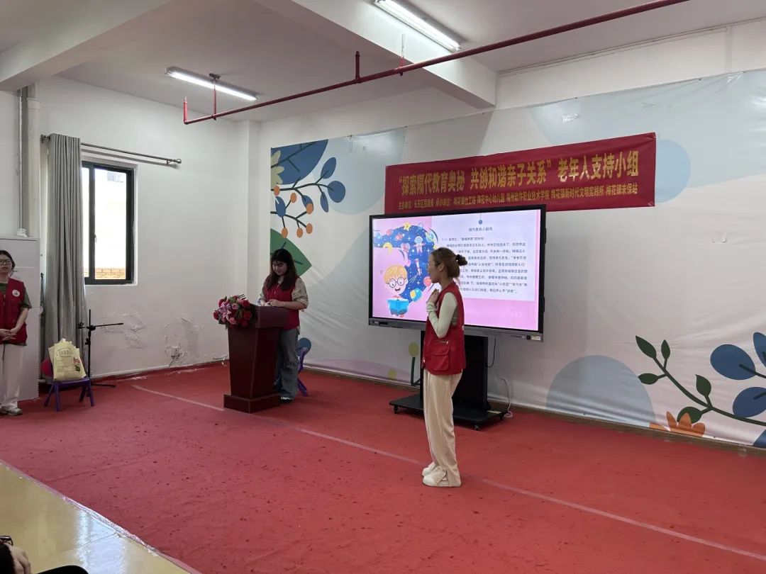 为了推动家庭教育的发展,增强家庭凝聚力,创建和谐的亲子关系,提高家庭教育指导能力,促进“隔代教育”的良性互动。2024年5月10日,智能建造产业学院学生党支部联合梅花镇社工站前往梅花中心幼儿园开展“探索隔代教育奥秘,共创和谐亲子关系”隔代教育主题的志愿服务活动。