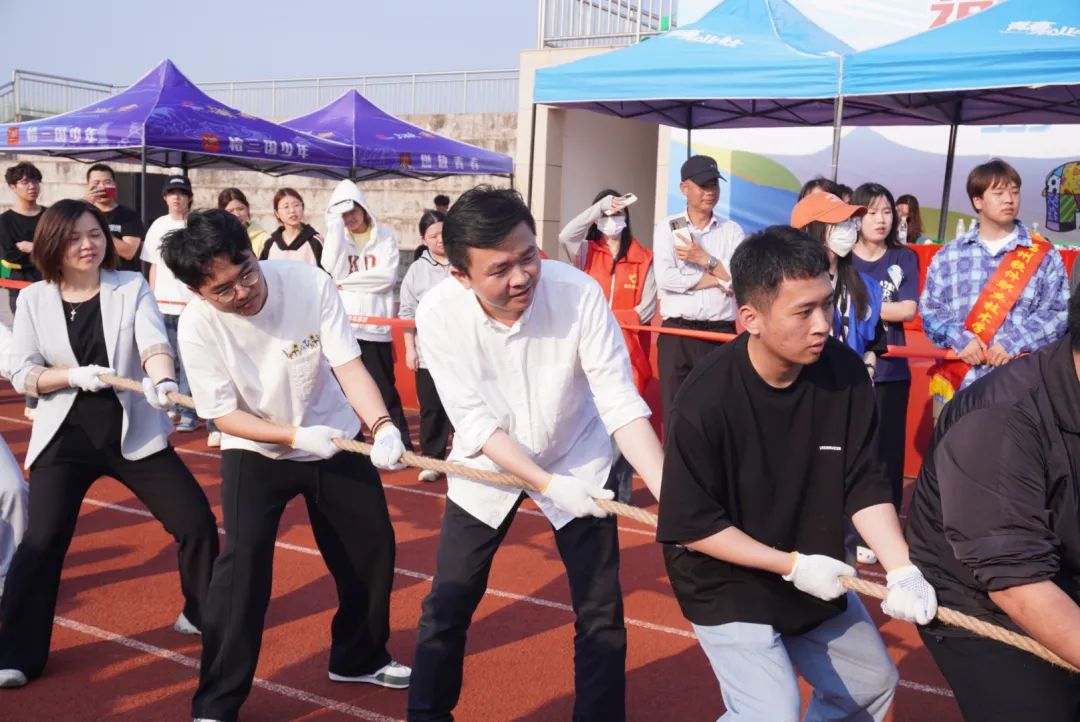 劲绳紧握,众志成城,拔河场上齐心凝力掎裳连袂,他们力量与策略相交织,荣光熠熠。