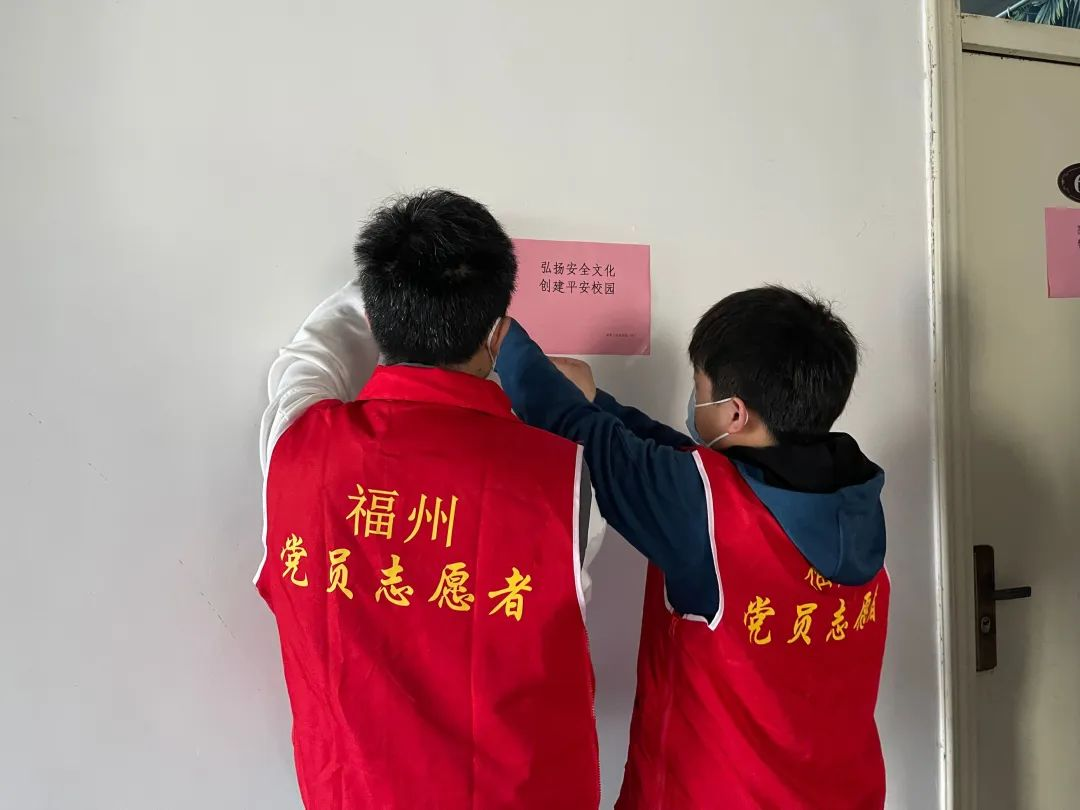 除了线上宣讲以外,我系党站、团委分别组织学生党员和学生会干事在宿舍走廊、电梯口、食堂等主要路口张贴与防火用电安全、防疫安全、宿舍防盗、防范电信诈骗等校园安全有关的宣传标语,并深入学生宿舍分发宣传单,加强宣传力度,营造浓厚的宣传氛围。