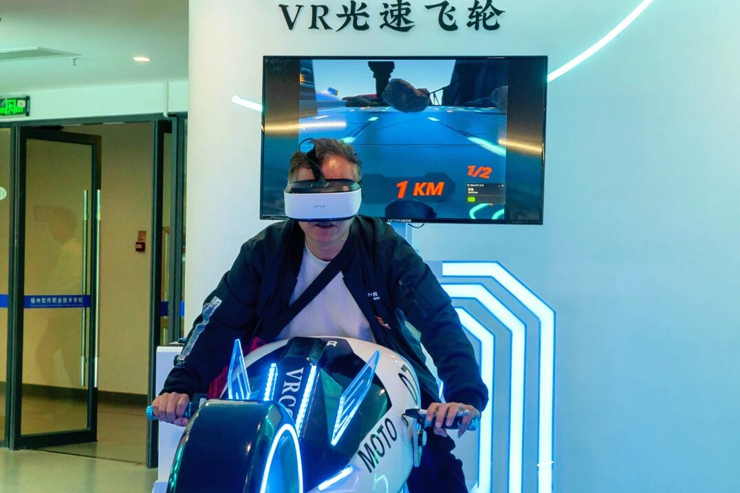 交流伊始,马勇书记代表学校对陈硕书记一行的到来表示热烈欢迎,并陪同来宾参观了我校元宇宙体验中心、新技术体验中心、“元宇宙+”思政育人创新实践基地、电子竞技实训室和校展览馆等地。来宾们详细了解我校在产教融合、党建品牌等方面的实践介绍,现场沉浸式体验“元宇宙”思政育人项目,对我校“厚德笃行、励学强技”的办学理念与建设成果给予高度评价。