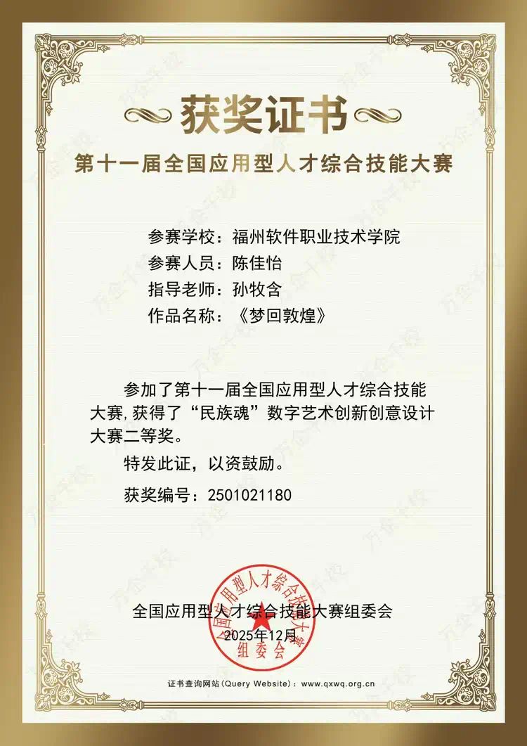近日,第十一届全国应用型人才综合技能大赛圆满落幕。我校智能建造产业学院积极响应大赛“以赛促学、以赛促创、以赛促教、以赛促业”的核心宗旨,广泛动员师生参与。在“民族魂”数字艺术创新创意设计赛项中,共有10名学生获奖,其中一等奖1项、二等奖4项、三等奖5项,充分彰显了学院持续深化产教融合、注重实践教学、鼓励创新创造的成果。学院将以此为契机,进一步提升人才培养质量,为相关产业输送更多优秀技术技能人才。