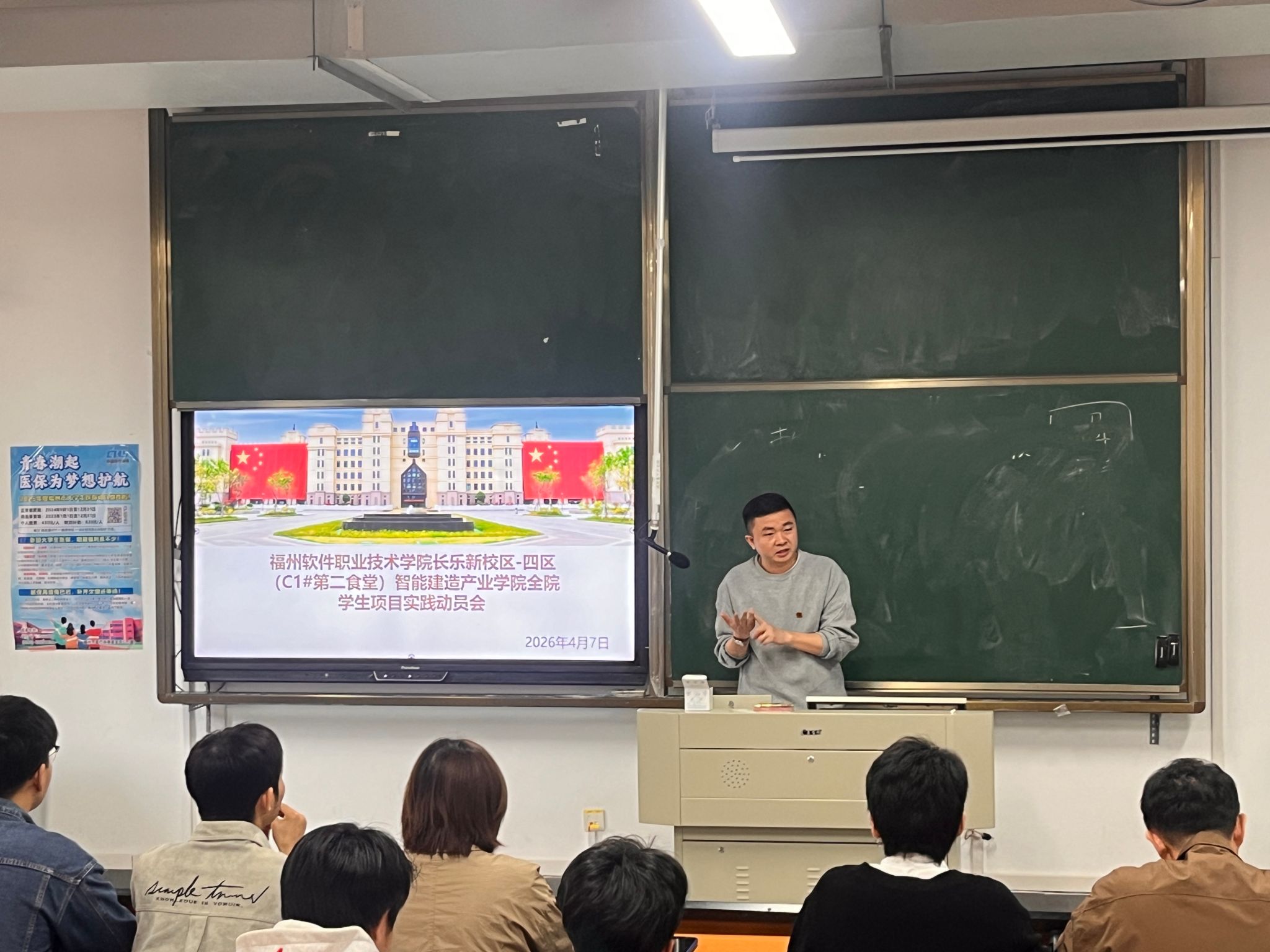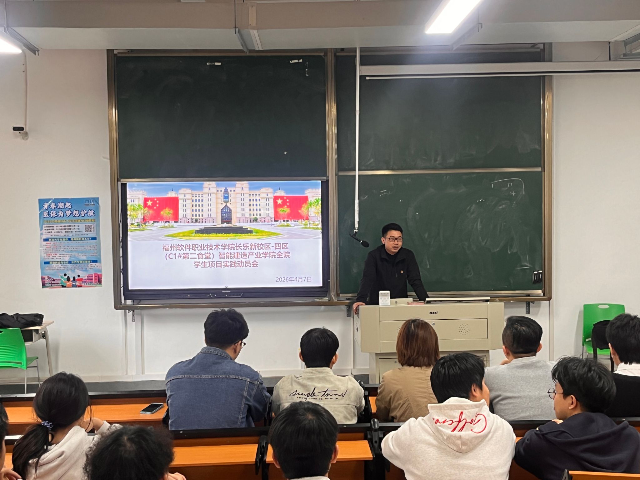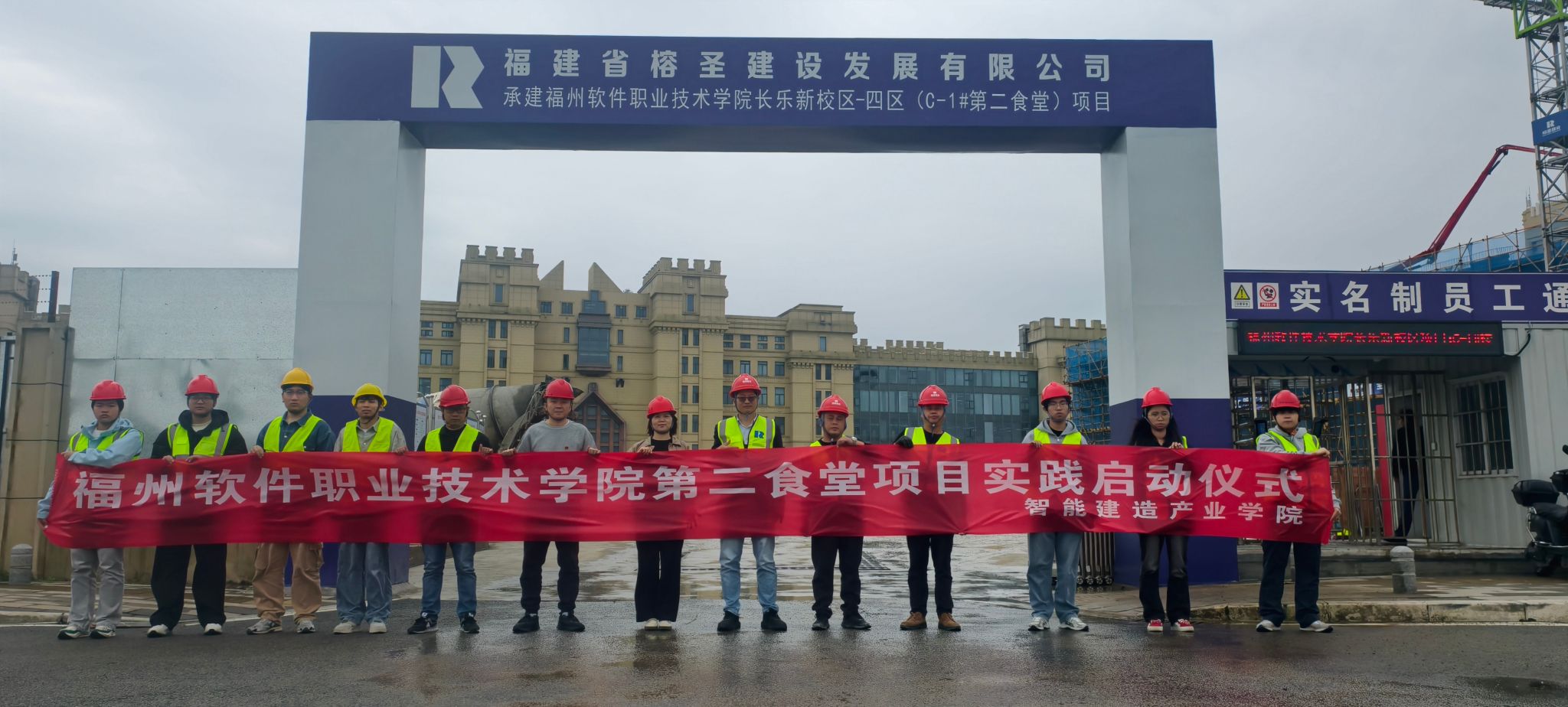2026年4月7日,智能建造产业学院在长乐新校区隆重举行学生赴C1#第二食堂项目出征仪式暨实习启动仪式,标志着学院依托学校自建工程开展的实践教学正式拉开帷幕。作为学校重点自建工程,C1#第二食堂目前已进入施工关键阶段,为学生提供了真实可参与的实战实践平台。