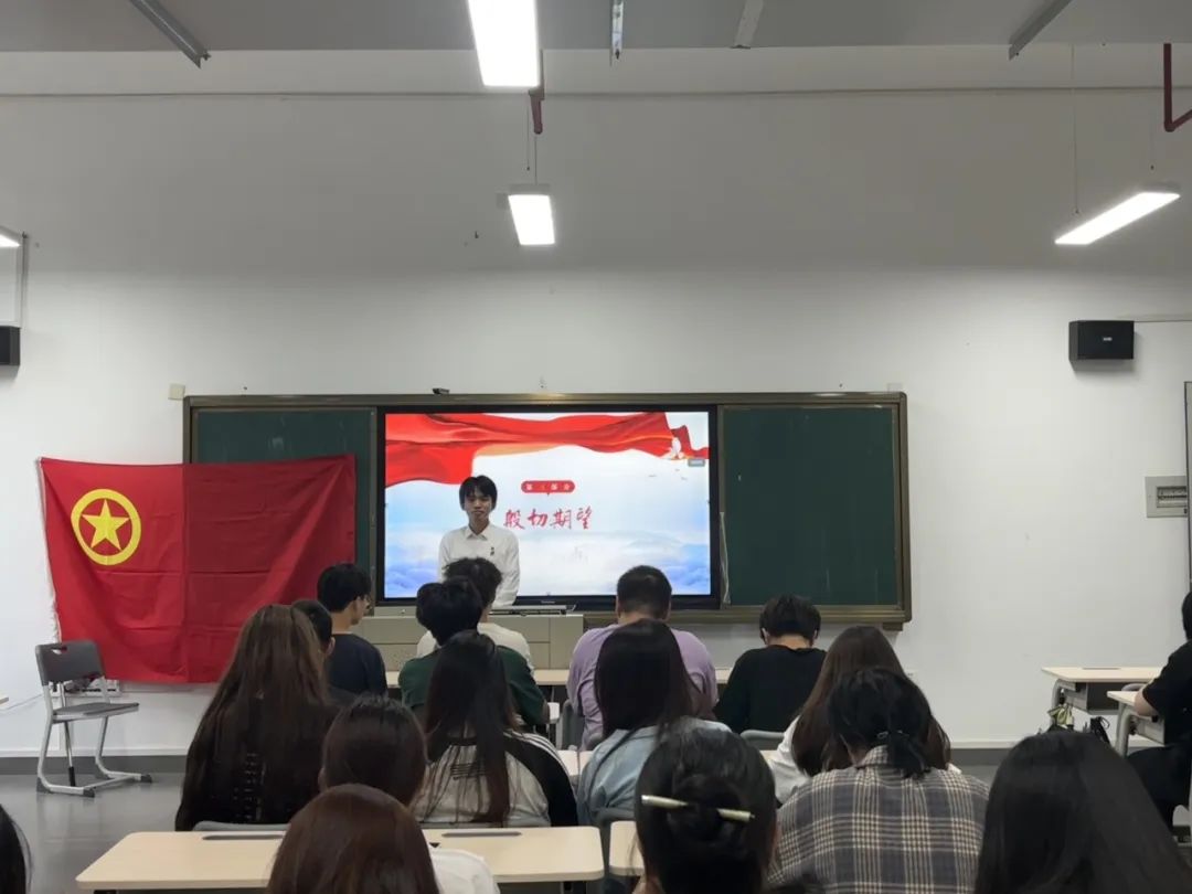 活动伊始,2023级建筑室内设计1班团支部成员及全体同学起立奏唱团歌。