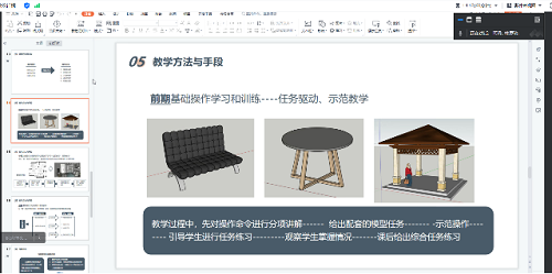本次“说专业”“说课程”活动的顺利开展,进一步明晰了建筑室内设计专业的发展方向,理清了专业的建设思路,优化了课程教学设计,促进了教师间的相互交流。为提高人才培养质量,深入推进“三教”改革,推动专业群数字化升级改造,起到了积极的促进作用。
