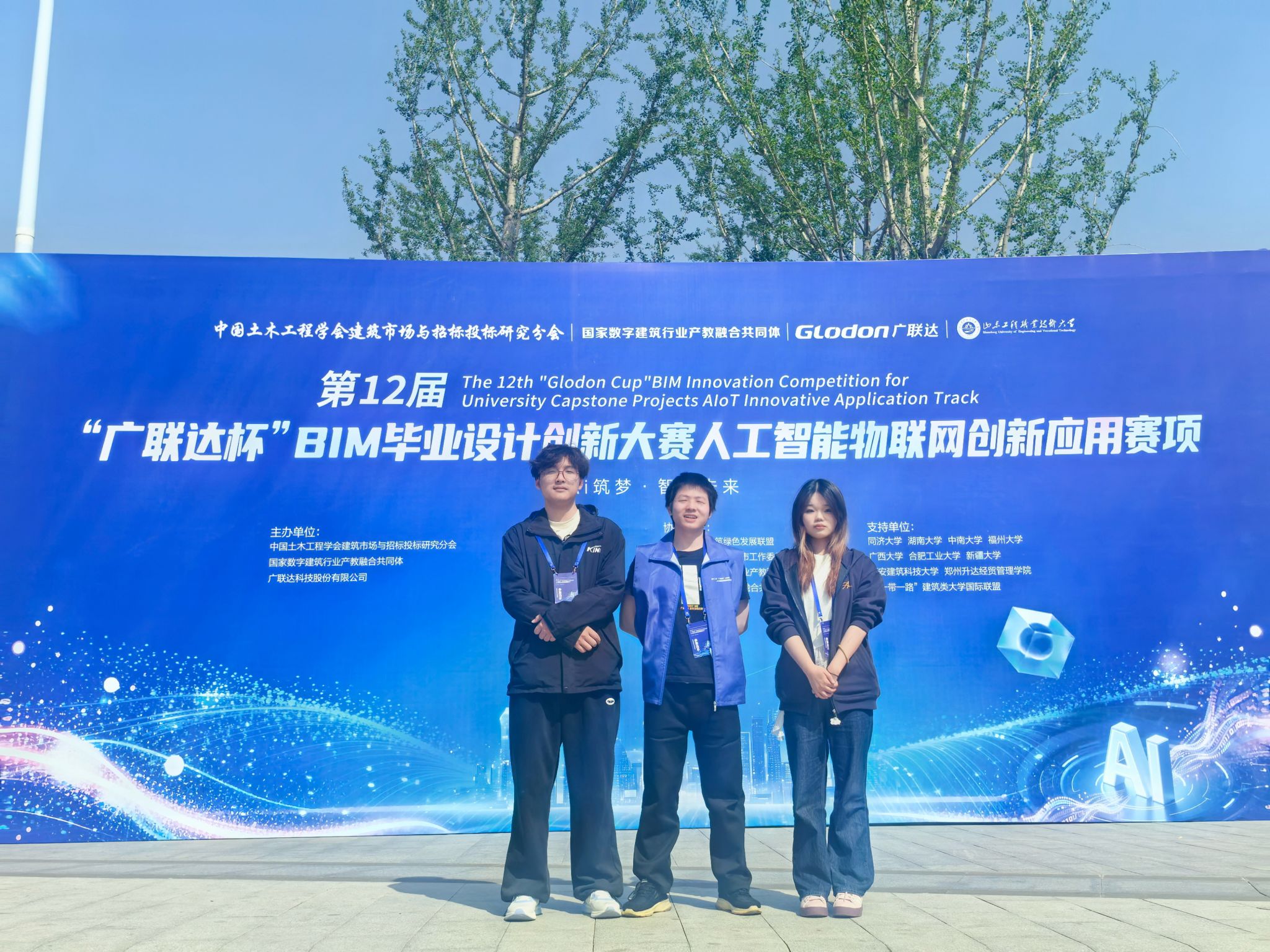 2026年4月17日至4月19日,第十二届“广联达杯”BIM毕业设计创新大赛(创新赛道)——人工智能物联网创新应用赛项决赛圆满落幕。我校智能建造产业学院两支参赛团队在黄日宏、陈燕玲两位老师的指导下,凭借扎实的专业功底、前沿的创新思维与出色的项目实践能力,在全国众多参赛队伍中脱颖而出,荣获本次赛项二等奖、三等奖各一项。此次获奖充分展现了我校在人工智能、物联网交叉学科领域的人才培养成果与学生创新实践水平。