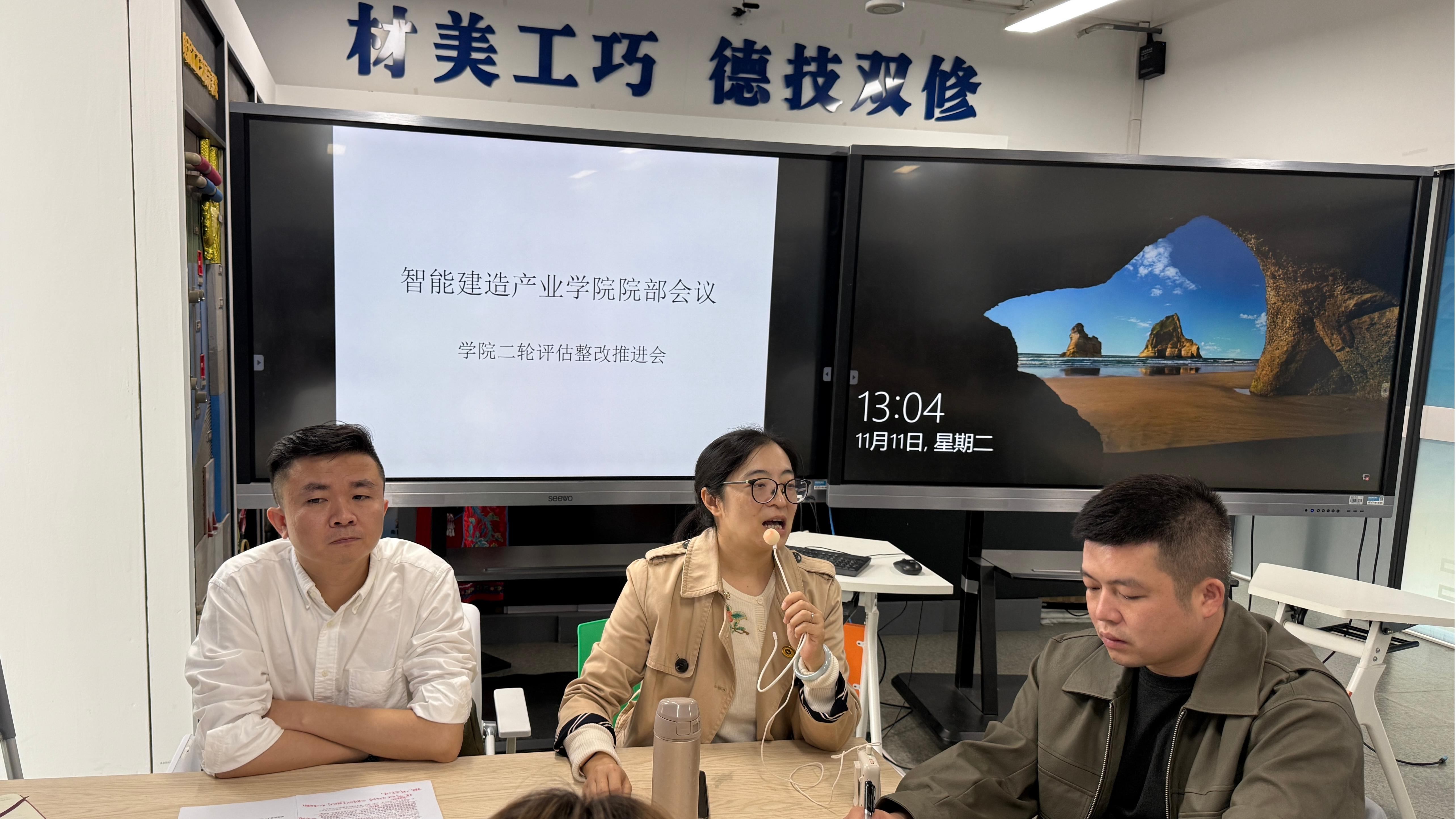 11月11日下午,我校智能建造产业学院在J601召开院部会议暨“二轮评估回访工作”动员部署会。会议由智能建造产业学院副院长王德成主持,教学质量管理中心主任彭静莅临指导,智能建造产业学院党总支副书记张慧及学院全体教职工参会。